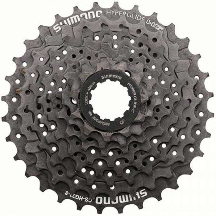 Cassette Shimano HG31 de 11/34 dientes para 8 velocidades. Los piñones tienen un diseño específico Hyperglide para optimizar los cambios de marcha con gran rapidez y suavidad y que elimina el resbalamiento o los impactos del engranaje.